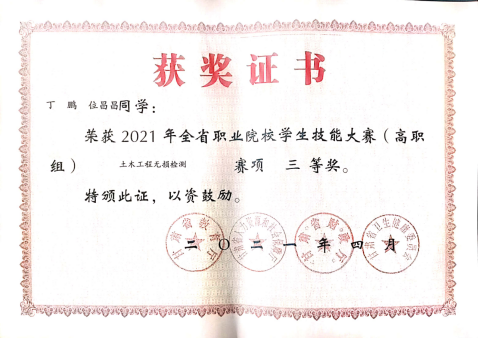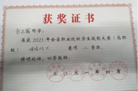 2021年甘肃省职业院校学生技能大赛于4月17日圆满落下帷幕,在甘肃钢铁职业技术学院赛点开展的本次大赛高职组焊接技术1+x证书赛项中,甘肃建筑职业技术学院交通工程系桂知进、伏彦军老师指导的包正巍和刘旭两名学生在本赛项中分别获得二等奖1项、三等奖1项。在甘肃交通职业技术学院赛点开展的土木工程无损检测中,学生丁鹏、位昌昌获得学生组三等奖,教师杨鹏飞、任国志获得教师组三等奖。