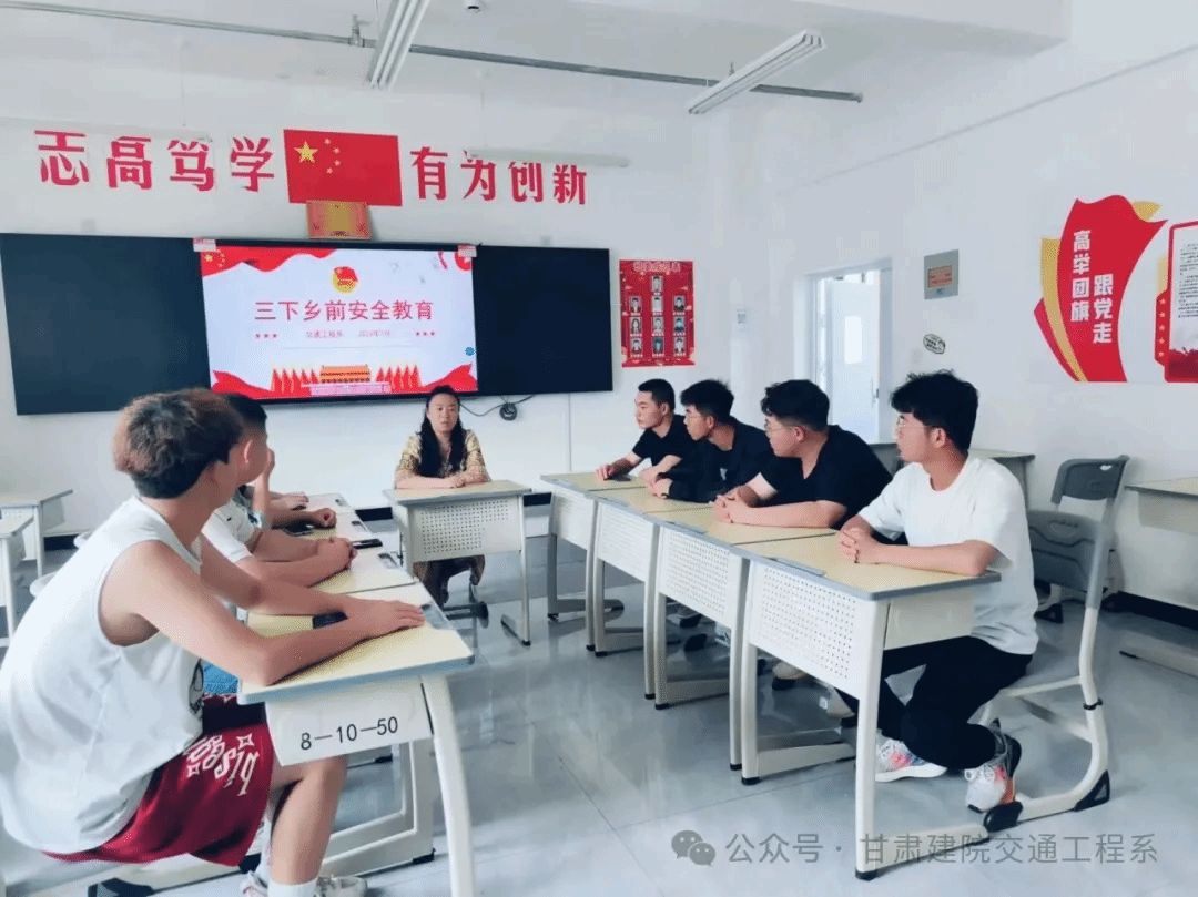 国梦复兴征途上,青春铸就辉煌程。为全面贯彻落实习近平新时代中国特色社会主义思想、党的二十大和二十届二中全会精神,践行2024年习近平总书记五四青年节对全国广大青年寄语精神,引导和帮助青年学生志存高远、脚踏实地,把课堂学习和乡村实践紧密结合起来,厚植爱国助农情怀,在乡村振兴的大舞台上建功立业,上好与现实相结合的“大思政课”,为全面建设社会主义现代化国家贡献青春力量。甘肃建筑职业技术学院交通工程系于2024年7月11日开展“挺膺担当砺青春,以知促行践使命”大学生“三下乡”暑假社会实践活动出征仪式。