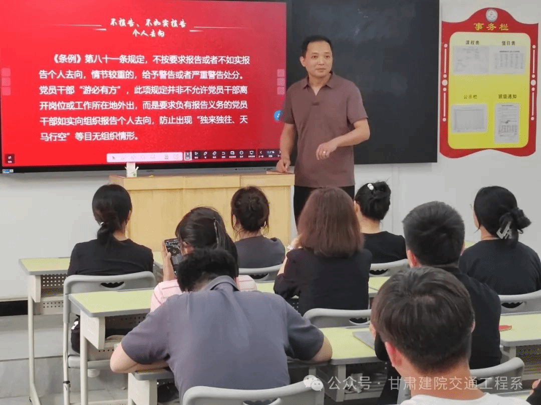 于书记从第八十条,第八十一条做了详细讲解。他指出党纪学习教育,是党中央部署的重要政治任务,是加强党的纪律建设、以自我革命精神推动全面从严治党向纵深发展的重要举措,是党的政治生活中的一件大事。全系上下要提高政治站位,深刻认识开展党纪学习教育的重要意义,把思想和行动统一到党中央决策部署上来,把开展党纪学习教育作为当前重要政治任务,准确把握党纪学习教育的目标任务,把党纪学习教育与学校中心工作紧密结合,融入日常、抓在经常,确保党纪学习教育取得实实在在的成效。全系党员干部要坚持问题导向,严格执行和维护党的纪律,切实把自己摆进去、把工作摆进去、把职责摆进去,内化于心、外化于行,将党规党纪转化为日用自觉的行为规范,努力做自我革命的表率、遵规守纪的标杆,共同涵养风清气正的校园环境,推动学校事业高质量发展。