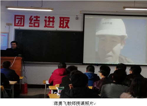 道桥教研室蒋勇飞老师在《铁路隧道施工技术》课程中利用网络平台与敦格项目我系15道桥2班申飞同学连线,通过项目介绍、现场参观、施工过程讲解、交流互动几个环节使学生实景学习了新奥法隧道施工技术;李小兵老师在《桥涵构造与施工技术》课程中利用网络交流平台与重庆阿蓬江特大桥项目我系15道桥班金朝阳同学连线,通过现场远程连线联动学习、施工过程讲解、交流互动环节实景学习了塔柱爬模施工技术、主梁挂篮施工技术,收效很好;杨鹏飞老师在《铁道选线设计》课程中利用网络平台与肯尼亚蒙内铁路工务部轨检组组长郑工程师连线,通过项目简介、现场参观、轨道检测作业讲解、互动交流几个环节使学生实景学习了轨道检测数据分析作用及意义,通过实景教学法实践,学生学习积极性高,学习效果好,师生好评连连。
