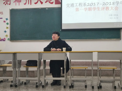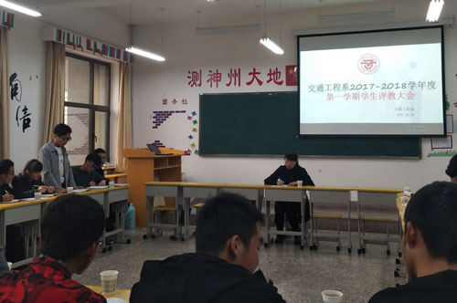 2017年10月29日下午4:30分,在学院团委组织下,交通工程系在建院康乐校区道桥一班教室召开了“2017~2018学年度第一学期学生评教大会”。会议由交通工程系主任王荣主持,各个班委进行了发言。