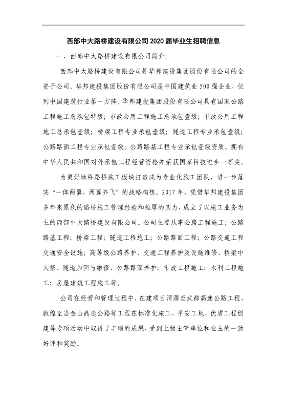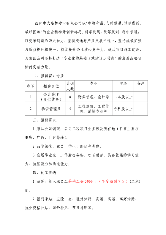 招聘 |西部中大路桥建设有限公司