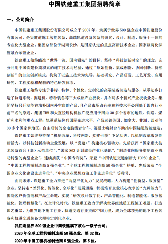 招聘 |中国铁建重工集团招聘简章