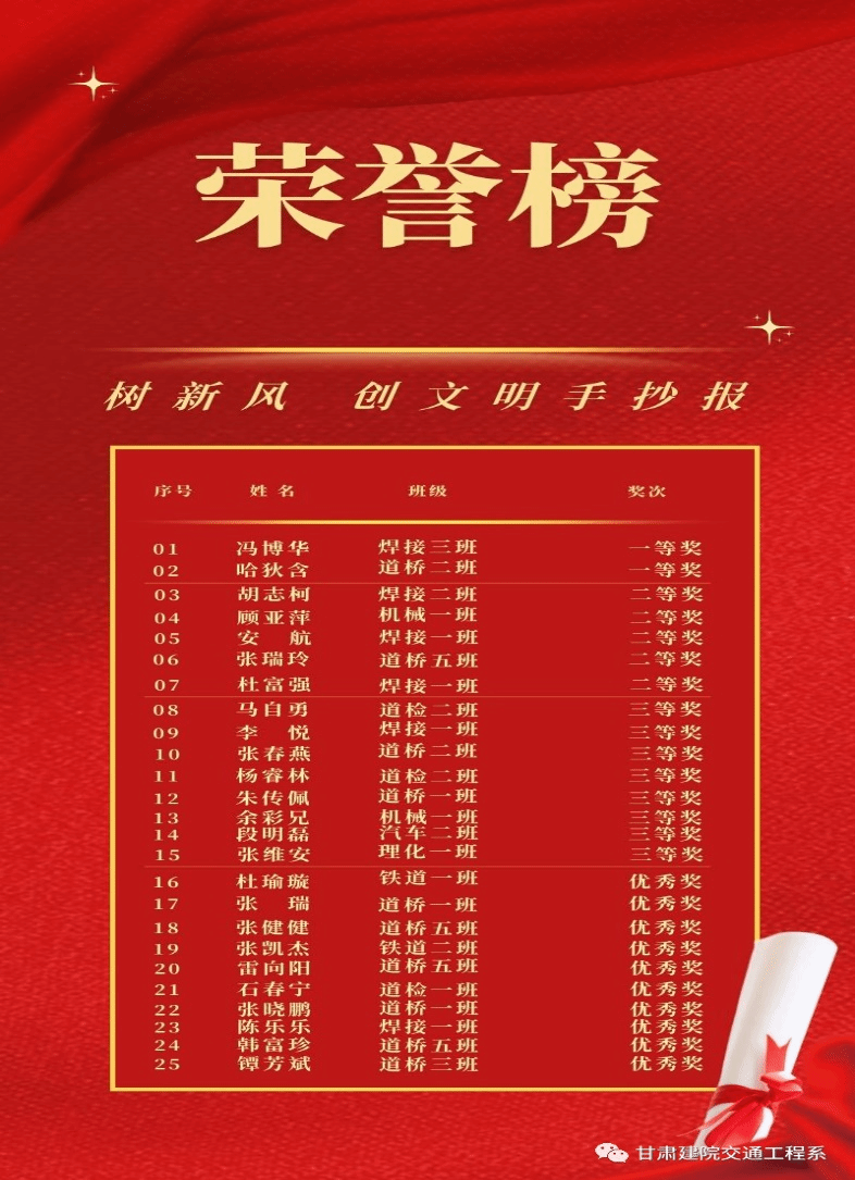 2023年12月5日甘肃建筑职业技术学院交通工程系团总支组织开展了“树新风 创文明”主题教育手抄报比赛。此次活动历时一周,共计78人参赛,收集作品78幅。活动中同学们广泛收集资料以图文并茂的形式、将安全知识、网络诈骗、禁毒禁赌、预防艾滋、校园欺凌、校园贷款、无烟校园、心理健康等方向的各类文明守纪的主题活动通过自我的理解和大胆的想象进行创作,每一份佳作都设计构思精巧,内容丰富多彩,以细腻独特的视角呈现出了各类寓意鲜明的手抄报。画作主题的可读性、宣传性极强,充分体现了知识性、趣味性与实用性的统一,富有非常重要的教育警示意义!