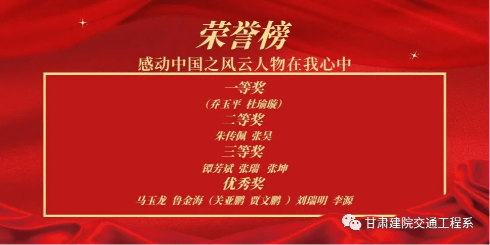 “天地英雄气,千秋尚凛然。”习近平总书记指出:“崇尚英雄才会产生英雄,争做英雄才能英雄辈出。”古往今来,中华大地上涌现的千千万万英雄人物,闪耀在他们身上的爱国主义、勤劳勇敢、自强不息等中华民族精神,是具有5000多年中华文明的鲜明标识,也是新时代中国不断传承弘扬的精神财富。2023年12月14日甘肃建筑职业技术学院交通工程系团总支组织开展“感动中国之风云人物在我心中”PPT主题教育宣讲活动,共计42人参赛。