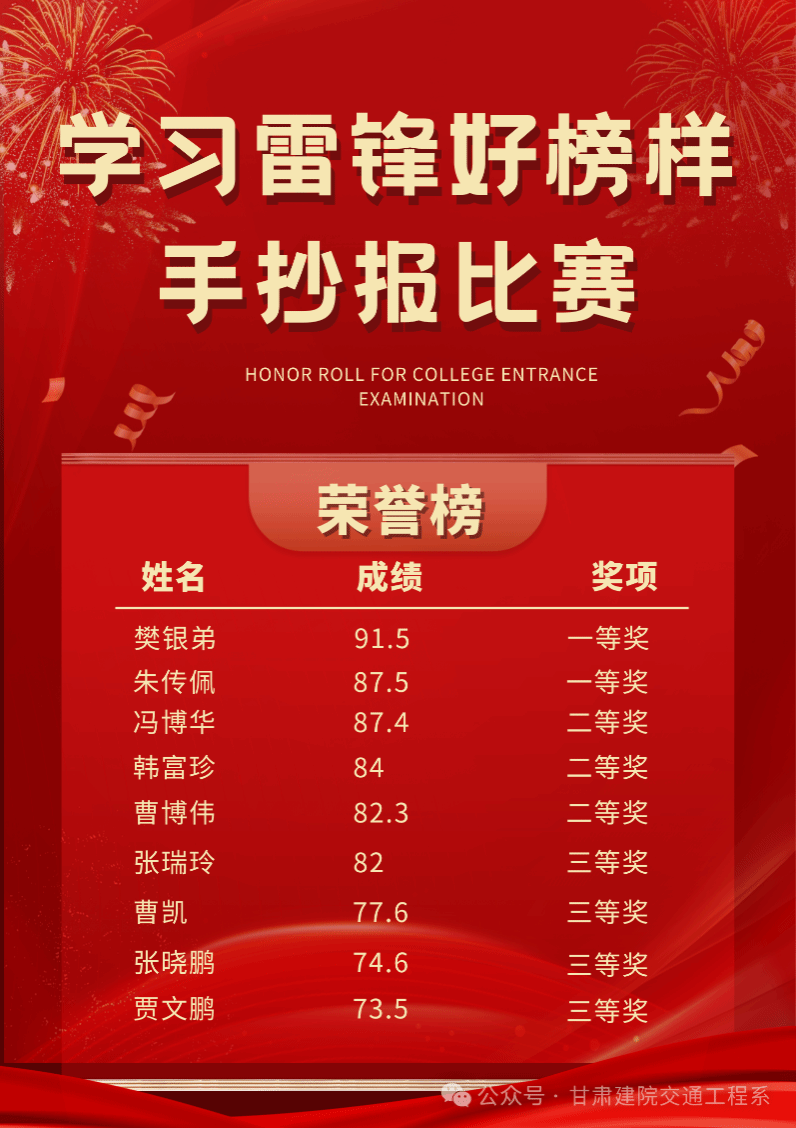 此次手抄报比赛不仅提高了同学们的动手能力,更重要的是通过学习和宣传雷锋精神,引导同学们树立正确的价值观和世界观,增强社会责任感,同时,也为校园文化建设注入了新的活力。交通系将秉承学习雷锋好榜样,继续深化雷锋精神的学习和实践,通过开展更多形式的活动,引导学生们将雷锋竞赛内化于心、 外化于行。也希望全校师生能够将雷锋精神融入到日常生活和学习中,不断提升的大学生道德水平和综合素养。