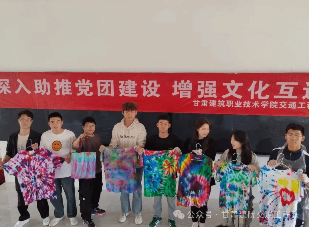 巧手扎锦绣,布里染斑斓。为厚植文化底蕴,提高大学生们对非遗文化的认识,丰富大学生校园文化生活。落实立德树人根本任务,推进“五育并举”,弘扬中华优秀传统文化。甘肃建筑职业技术学院交通工程系团总支学生委员会于2024年4月17日在阶梯五教室联合组织开展“发挥专业特色 弘扬传统文化”扎染实践活动,体验魅力扎染,邂逅传统文化,碰撞艺术火花。