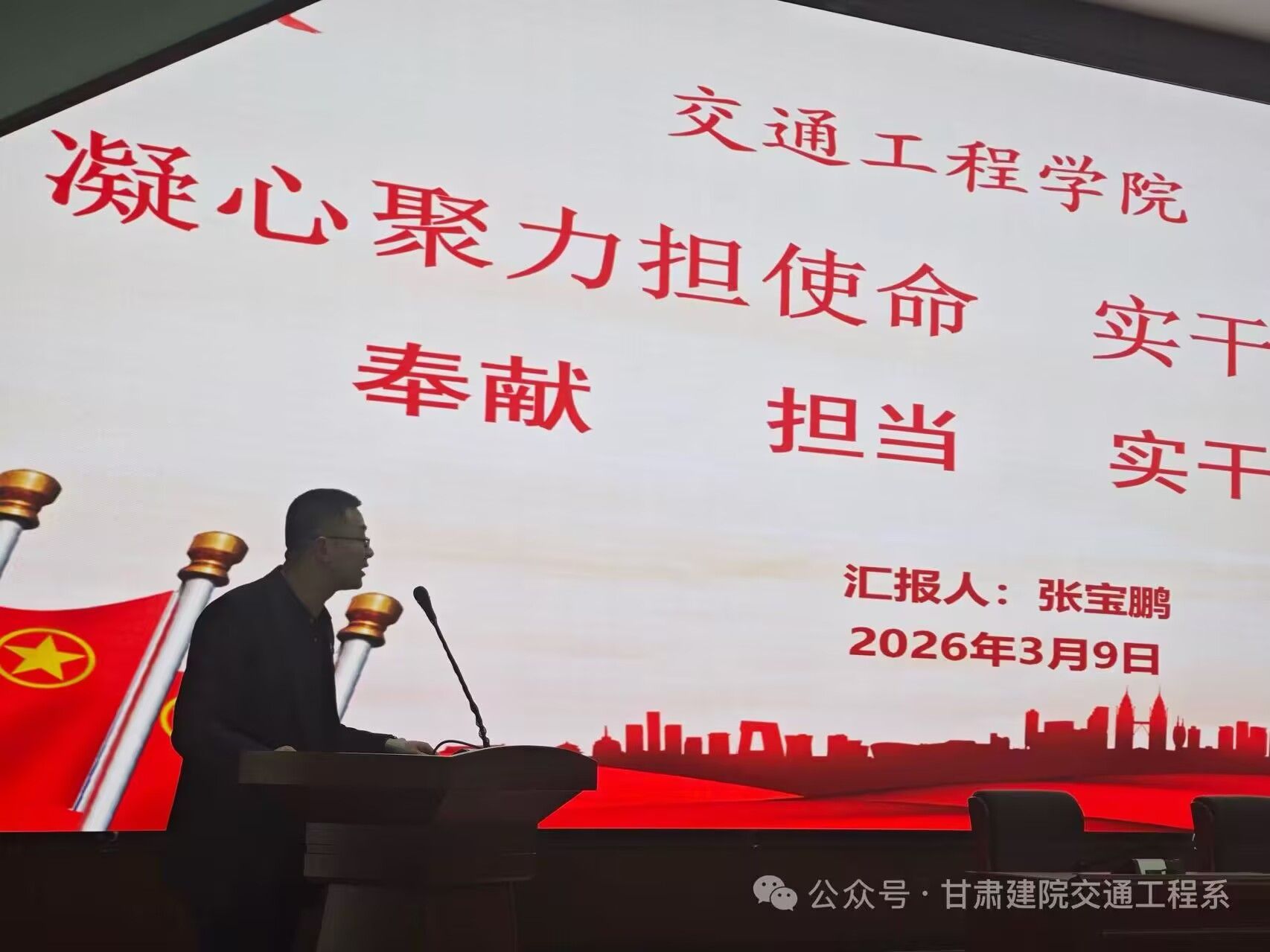 为加强学生干部队伍建设,明确职责使命,充分发挥学生干部在学风建设中的模范带头作用,助力学校全国文明校园创建与双高校建设,交通工程学院于2026年3月9日召开以 “凝心聚力担使命,实干奋进促学风” 为主题的学生干部大会。交通工程学院党总支书记居春光、院长张宝鹏、副院长李成伟、党团学负责人狄晶出席会议,学生工作干事及学院学生会、团总支成员,24 级、25 级各班班委、宿舍长等共计 438 名学生干部参会。会议由副院长李成伟主持。
